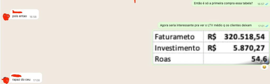 Fazemos acompanhamento conforme o caso, com 1 reunião semanal ou quinzenal. Também enviamos relatório toda segunda-feira no WhatsApp do cliente ou no grupo de atendimento.